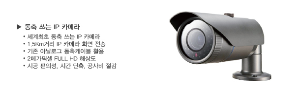 À̹ø¿¡ Ãâ½ÃÇÏ´Â µ¿Ãà ¾²´Â IPÄ«¸Þ¶ó´Â ÀÌ¹Ì Æ÷¼³µÈ µ¿Ãà ÄÉÀ̺í(ECX 3C/5C2V, RG58/59/6/7 ¹× 5C-HFBT µî)À» ±×´ë·Î »ç¿ëÇÒ ¼ö ÀÖÀ¸¸ç, Full HD È­Áú¿¡ À¥¼­¹ö ±â´ÉÀ» ³»ÀåÇØ Áö´ÉÇü ¿µ»óºÐ¼®À» Áö¿øÇÑ´Ù.