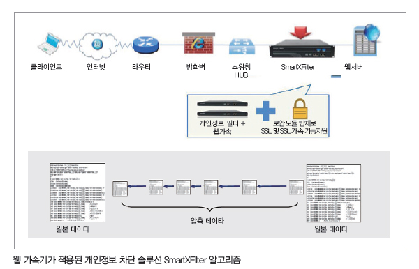 ³ª¼Ö¿¡¼ °³¹ßÇÑ °³ÀÎÁ¤º¸Â÷´Ü ¼Ö·ç¼ÇÀÎ SmartXFilter´Â À¥ °¡¼Ó±â¿Í °³ÀÎÁ¤º¸ Â÷´Ü ±â´ÉÀ» µ¿½Ã¿¡ ¼öÇàÇÏ´Â ±¹³»¿¡¼ °¡Àå Å« 󸮷®À» °®°í ÀÖÀ¸¸ç, 8´ëÀÇ Àåºñ·Î ÃÊ´ç 100,000 ¼¼¼ÇÀ» ó¸®ÇÏ´Â ´ëÇü »çÀÌÆ®µµ ÀÖ´Ù.