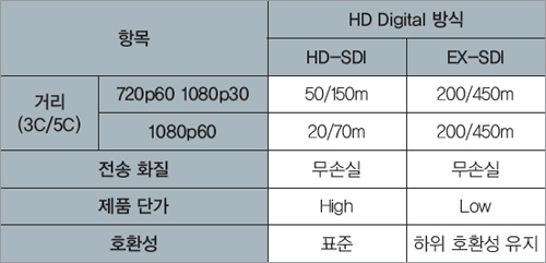 Ç¥. HD-SDI¿Í EX-SDIÀÇ ºñ±³ |