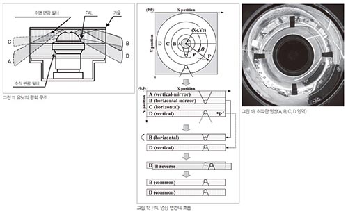 ±×·¡¼ Çϼ¼14) ¾¾ µîÀº ¸¶Âù°¡Áö·Î ·»Áî¿¡ ´ëÇØ ÂïÈ÷´Â À§Ä¡¿Í ¾Ó°¢ÀÇ °ü°è¸¦ ±¸ÇØ PALÀÇ ±¤ÇРƯ¼º¿¡ ÀÖ¾î º¯Çü º¸Á¤ÇÔ¼öf(r)¸¦ ÀÛ¼ºÇß´Ù. ÀÌ º¸Á¤ÇÔ¼ö f(r)À» ÀÌ¿ëÇØ Á÷±³ ÁÂÇ¥°è¿¡ ÀÖ¾î ¼öÁ÷¹æÇâÀ¸·Î ÂïÈ÷´Â À§Ä¡ÀÇ º¯ÇüÀ» º¸Á¤ÇÑ ÆÄ³ë¶ó¸¶ Àü°³ ¿µ»óÀ» ÀÛ¼ºÇÒ ¼ö ÀÖ°Ô µÈ´Ù.