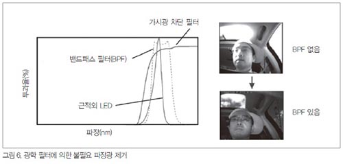 Ä«¸Þ¶ó ³»ºÎ¿¡ ¹êµåÆÐ½º ÇÊÅÍ(BPF)À» ³»ÀåÇÏ¿© ±ÙÀû¿Ü Á¶¸í±¤ÀÇ ÆÄÀ强ºÐ ÀÌ¿Ü ºÒÇÊ¿äÇÑ ºûÀ» Â÷´ÜÇÔÀ¸·Î½á ³· µ¿¾ÈÀÇ À̹ÌÁö S/N(½ÅÈ£ ÀâÀ½)ºñ¸¦ Çâ»ó½ÃÄ×´Ù. ¶Ç, ±ÙÀû¿Ü LED·ÎºÎÅÍ Á¶»çµÇ´Â Àû»ö ÆÄÀå ¼ººÐÀ» Á¦°ÅÇϱâ À§Çؼ ¾Õ¸é¿¡ °¡½Ã±¤ Â÷´Ü ÇÊÅ͸¦ ¼³Ä¡Çß´Ù(±×¸² 6).