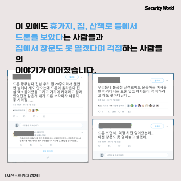 ÀÌ ¿Ü¿¡µµ ÈÞ°¡Áö, Áý, »êÃ¥·Î µî¿¡¼­ µå·ÐÀ» º¸¾Ò´Ù´Â »ç¶÷°ú ÀÌÁ¨ Áý¿¡¼­ â¹®µµ ¸ø ¿­°Ú´Ù¸ç °ÆÁ¤ÇÏ´Â »ç¶÷µéÀÇ À̾߱Ⱑ À̾îÁ³½À´Ï´Ù.