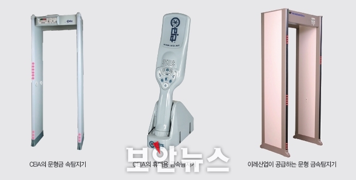 ÀÌ·¹»ê¾÷ÀÌ °ø±ÞÇÏ´Â ¹®Çü ±Ý¼ÓŽÁö±â´Â ¹Ì±¹»ê Àåºñ·Î, »ç¶÷µéÀÌ Åë°úÇÒ ¶§ ¸Ó¸®¿¡¼ ¹ß³¡±îÁö ÀÛÀº ±Ý¼Ó Á¶°¢À» °¨ÁöÇØ ³½´Ù. °¨Áö Á¤µµ´Â ¼öµ¿ Á¶ÀýÀÌ °¡´ÉÇØ ÀÛÀº ±Ý¼ÓºÎÅÍ Å« ±Ý¼Ó±îÁö °¨º°ÇÒ ¼ö ÀÖ´Ù.