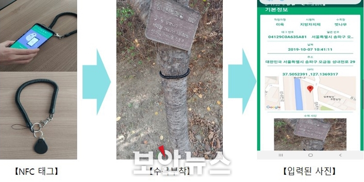 ±¹¸³»ê¸²°úÇпøÀÌ ½Ã³»¿£µé°ú Çù¾÷À» ÅëÇØ °³¹ßÇÑ À̹ø ½Ã½ºÅÛÀº ³ª¹«º°·Î ºÎÂøµÈ Ç¥½Ä(NFC, Near Field Communication)°ú ½º¸¶Æ®Æù ¾ÛÀ» ÅëÇØ ¼ö¸ñÀÇ ½Ç½Ã°£ »óÅÂ, °ü¸® ÀÌ·Â µîÀÇ Á¤º¸¸¦ ¼¹ö¿¡ ÀúÀåÇÏ¸ç µ¿½Ã¿¡ È®ÀÎÇÒ ¼ö ÀÖ´Ù. ¶ÇÇÑ °ü¸®ÀÚÀÇ ÇöÀç À§Ä¡»Ó ¾Æ´Ï¶ó ÁÖº¯¿¡ ÀÖ´Â ¼ö¸ñÀÇ Á¤º¸µµ Áöµµ¿¡ ÇÔ²² Ç¥½ÃÇØ »ç¿ëÀÇ ÆíÀǼºÀ» ³ô¿´´Ù.