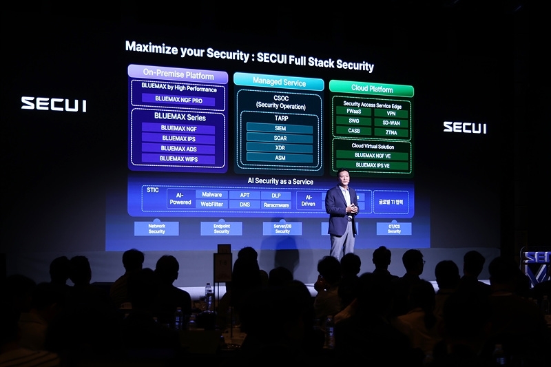 Á¤ ´ëÇ¥´Â ¡°AI TransformationÀ¸·Î °í°´ ȯ°æÀÌ ºü¸£°Ô º¯È­ÇÏ´Â °¡¿îµ¥, ¡®°í¼º´É¡¯, ¡®ÅëÇÕ º¸¾È Ç÷§Æû¡¯, ¡®AI¡¯´Â º¸¾È Ç÷§Æû ±¸ÃàÀÇ ÇÙ½É Àü·« ¿ä¼Ò¡±¶ó¸ç, ¡°½ÃÅ¥¾ÆÀÌ´Â °í¼º´É Çϵå¿þ¾î°¡ žÀçµÈ BLUEMAX NGF PRO¿Í AI ±â¹Ý ÅëÇÕ À§Çù ´ëÀÀ Ç÷§ÆûÀ» ±â¹ÝÀ¸·Î º¸¾ÈÀÇ Ç® ½ºÅÃ(Full Stack)À» ¿ÏºñÇϰí À̸¦ Áö¼ÓÀûÀ¸·Î °íµµÈ­ÇØ °í°´ÀÇ º¸¾È¼ºÀ» ±Ø´ëÈ­ÇÒ °Í¡±À̶ó°í ¸»Çß´Ù.