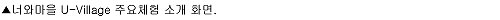 »ïô½Ã ³Ê¿Í Á¤º¸È¸¶À»¿¡ ±¸ÃàÇÑ U-Village´Â ¸¶À» ³» °¢ üÇèÄÚ½º¿Í ÁÖ¿ä °ü±¤Áö, º¼°Å¸®, ¹Î¹Ú À§Ä¡Á¤º¸¸¦ Æ÷ÇÔÇÑ Áöµµ¸¦ Á¦ÀÛÇØ GPS ±â¹ÝÀÇ ¼ºñ½º ½Ã½ºÅÛÀ» Á¦°øÇϰí ÀÖÀ¸¸ç, ¸¶À»¿¡¼ ½Ç½ÃÇϰí ÀÖ´Â ÁÖ¿ä üÇèȰµ¿À» µ¿¿µ»ó µî ¸ÖƼ¹Ìµð¾î·Î Á¦ÀÛÇØ ¸¶À»À» ¹æ¹®ÇÑ Ã¼Çè°´ÀÌ ½±°í Æí¸®ÇÏ°Ô ¼ºñ½º¸¦ ¹ÞÀ» ¼ö ÀÖ´Ù.