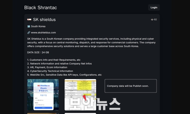 17ÀÏ º¸¾È ¾÷°è¿¡ µû¸£¸é, ´ÙÅ©À¥¿¡ ¡®ºí·¢½¬¶õÅá¯(Blackshrantac)À̶õ ÇØÄ¿ ±×·ìÀÌ SK½¯´õ½º µ¥ÀÌÅÍ 24GB¸¦ ÈÉÃÆ´Ù°í ÁÖÀåÇÏ´Â °Ô½Ã¹°À» ¿Ã·È´Ù. À̵éÀº ÈÉÄ£ µ¥ÀÌÅÍ¿¡¼ ÃßÃâÇÑ °ÍÀ¸·Î ÃßÁ¤µÇ´Â ¡â±â¼ú Á¤º¸ ¡â³×Æ®¿öÅ© Á¤º¸ ¡â³»ºÎ Àλç ÀÚ·á µîÀ» ´ãÀº À̹ÌÁö 40¿©°³¸¦ »ùÇ÷Π°ø°³Çß´Ù.