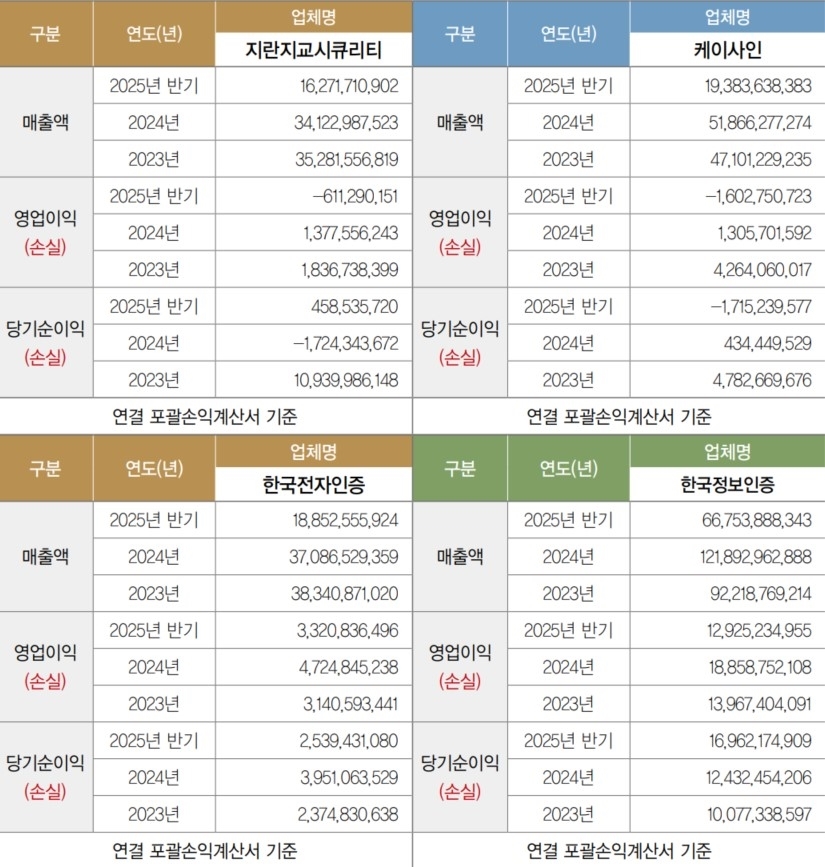 [º¸¾È´º½º °­ÃÊÈñ ±âÀÚ] 2025³â »ó¹Ý±â ±¹³» »çÀ̹öº¸¾È »óÀå»çµéÀÇ ½ÇÀûÀº ¡®±â¼ú ³»ÀçÈ­¡¯°¡ ½ÂÆÐ¸¦ °¥¶ú´Ù. AI, Ŭ¶ó¿ìµå, SaaS, ¾çÀÚ³»¼º¾ÏÈ£(PQC) µî ½Å±â¼ú Àüȯ¿¡ ¼º°øÇÑ ±â¾÷µéÀº ±¸µ¶Çü ¸ÅÃâ°ú ¹Ýº¹Çü ¼­ºñ½º ±¸Á¶¸¦ ÅëÇØ ¾ÈÁ¤Àû ¼öÀÍÀ» È®º¸ÇÑ ¹Ý¸é, ±¸ÃàÇü ÇÁ·ÎÁ§Æ® ÀÇÁ¸µµ°¡ ³ôÀº ±â¾÷µéÀº ¿ÜÇüÀ» À¯ÁöÇßÁö¸¸ ¼öÀͼº¿¡¼­ ÇѰ踦 µå·¯³Â´Ù. »çÀ̹öº¸¾È »óÀå»ç¸¦ ¡âÀÎÁõ¡¤¾Ïȣȭ º¸¾È ¡â³×Æ®¿öÅ©¡¤°üÁ¦ º¸¾È ¡âµ¥ÀÌÅÍ¡¤¹®¼­ º¸¾È ¡âAI¡¤Â÷¼¼´ë º¸¾È ¡âÅëÇÕ º¸¾È¡¤Ç÷§Æû±îÁö 5´ë º¸¾È±ºÀ¸·Î ³ª´² »ç¾÷±ºº° ±â¼ú Àüȯ È帧°ú ½ÇÀû Ư¡À» ºÐ¼®Çß´Ù.