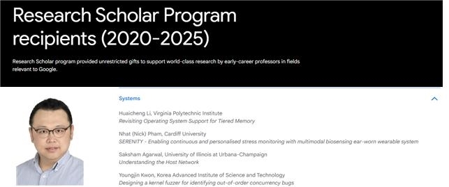 ÀÌ »óÀº ÀΰøÁö´É(AI), ½Ã½ºÅÛ, º¸¾È, µ¥ÀÌÅÍ °ü¸® µî ´Ù¾çÇÑ ºÐ¾ß¿¡¼ Çõ½ÅÀû ¿¬±¸¸¦ ¼öÇàÇÏ´Â ½ÅÁø ±³¼ö¸¦ Áö¿øÇϱâ À§ÇØ 2020³â ½ÃÇàµÈ ±Û·Î¹ú ¿¬±¸ Áö¿ø ÇÁ·Î±×·¥ÀÌ´Ù.