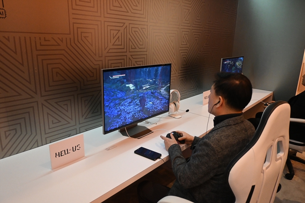 ¡ã¼Õ½ÂÇö ȸÀåÀÌ »ï¼ºÀüÀÚÀÇ 3D ¸ð´ÏÅ͸¦ üÇèÇØº¸°í ÀÖ´Ù [Ãâó: Çѱ¹Á¤º¸Åë½Å±â¼úÇùȸ(TTA)]
