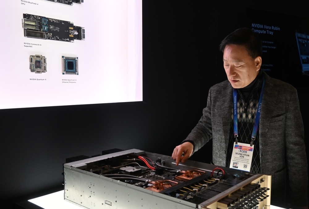 ¡ã¼Õ½ÂÇö ȸÀåÀÌ ¡®º£¶ó ·çºó¡¯ AI Ĩ Ç÷§Æû ¡®¿£ºñµð¾Æ ÄöÅÒ-X ÀÎÇǴϹêµå Æ÷Åä´Ð½º ½ºÀ§Ä¡¡¯ ºÎǰÀ» »ìÆìº¸°í ÀÖ´Ù [Ãâó: Çѱ¹Á¤º¸Åë½Å±â¼úÇùȸ(TTA)]