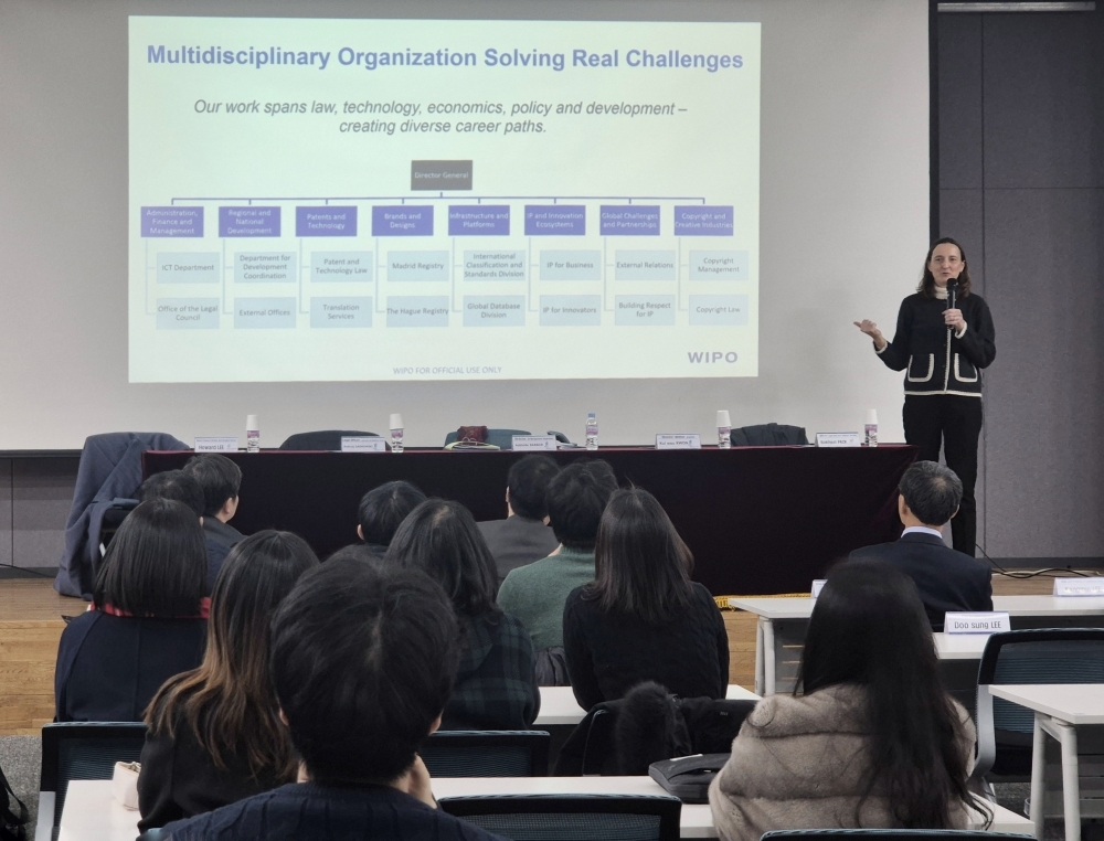 ¾Æµ¨¶óÀÌµå ¹Ù¸£ºñ¿¡ WIPO Àλ籹ÀåÀÌ Á÷Á¢ ¹æÇÑ, WIPO ÀλçÁ¤Ã¥À» Á÷Á¢ ¼Ò°³ÇÑ À̹ø ¼³¸íȸ¿¡´Â ±¹³» º¯¸®»ç¿Í Áö½ÄÀç»ê Àü¹®°¡, °ü·Ã ºÐ¾ß Àü°øÀÚ µî 100¿©¸íÀÌ Âü¼®ÇØ ³ôÀº °ü½ÉÀ» º¸¿´´Ù.