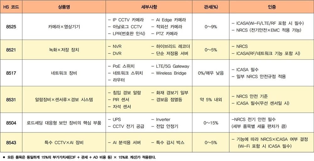 ¡ã2025³â ³²¾Æ°ø HS Äڵ庰 CCTV¡¤º¸¾ÈÀåºñ °ü¼¼ ¹× ÀÎÁõ Á¤º¸ [Ãâó: ³²¾Æ°ø Áß¾ÓÀºÇà, ICASA, NRCS]