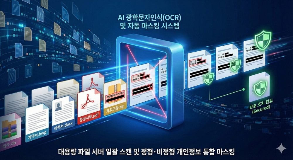 ¶§¹®¿¡ ¹®¼ ³» ÅØ½ºÆ®¿Í À̹ÌÁö ¿µ¿ªÀ» µ¿½Ã¿¡ ºÐ¼®ÇØ °³ÀÎÁ¤º¸¸¦ ÀÚµ¿ ŽÁöÇϰí, Çѱۡ¤¿ÀÇǽº¡¤PDF¡¤¾ÐÃàÆÄÀϱîÁö ÅëÇÕÀûÀ¸·Î ¸¶½ºÅ·Çϴ ü°è°¡ ÇÊ¿äÇÏ´Ù. ´ë±Ô¸ð ÆÄÀÏ ¼¹ö¸¦ ´ë»óÀ¸·Î ÇÑ Àϰý ½ºÄµ°ú ÀÚµ¿ ¸¶½ºÅ·ÀÌ º´ÇàµÉ ¶§ ¹®¼ ±â¹Ý °³ÀÎÁ¤º¸º¸È£ÀÇ ½ÇÈ¿¼ºÀ» È®º¸ÇÒ ¼ö ÀÖ´Ù.