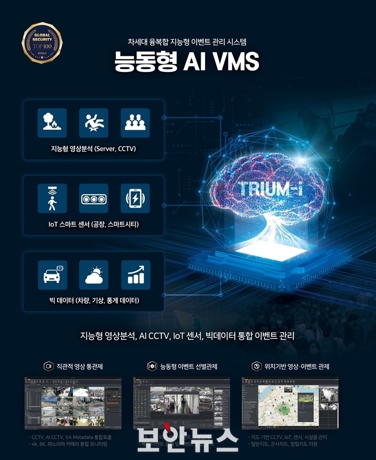 TRIUM i´Â ÅëÇÕ°üÁ¦ VMS¿¡ ½Ã³ª¸®¿À ±â¹Ý AI ºÐ¼®À» °áÇÕÇÑ ´Éµ¿Çü AI VMS ¼Ö·ç¼ÇÀ¸·Î, ½Ã½ºÅÛÀÇ ¹«Á¦ÇÑ È®À塤»ç¿ëÀÚ Á᫐ °ü¸® ±â´É¡¤Á÷°üÀûÀÎ UI¸¦ ±¸ÇöÇÑ´Ù.
