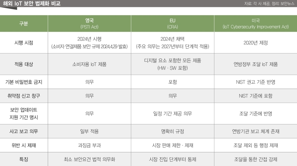 ¡ãÇØ¿Ü IoT º¸¾È ¹ýÁ¦È­ ºñ±³ [Á¤¸®: º¸¾È´º½º]