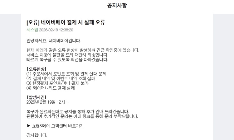 ³×À̹öÆäÀÌ´Â °øÁö¸¦ ÅëÇØ ¡âÁÖ¹®¼­ ³» Æ÷ÀÎÆ® Á¶È¸ ¹× °áÁ¦ ½ÇÆÐ ¡â°áÁ¦¡¤À̺¥Æ® ³»¿ª Á¶È¸ ºÒ°¡ ¡âÇöÀå °áÁ¦½Ã Æ÷ÀÎÆ® ¹× ¸Ó´Ï »ç¿ë Á¦ÇÑ ¡âÆäÀ̸ӴÏÄ«µå °áÁ¦ ½ÇÆÐ µîÀÇ Àå¾Ö Çö»óÀ» °ø½Ä È®ÀÎÇß´Ù.