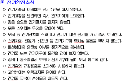 ÀÌ¿¡ µû¶ó ³ëµ¿ºÎ¿Í Çѱ¹»ê¾÷¾ÈÀü°ø´ÜÀº º»°ÝÀûÀÎ ´õÀ§¿Í À帶°¡ ½ÃÀ۵Ǵ 7¿ùÀ» ¸Â¾Æ, °¨ÀüÀçÇØ ¿¹¹æÀ» À§ÇØ Àý¿¬Àå°© Âø¿ë µî Àü±â ÀÛ¾÷½Ã ¾ÈÀü¼öÄ¢À» ÁؼöÇϰí Á¢ÁöÁ¶Ä¡ ¹× ´©ÀüÂ÷´Ü±â µîÀ» È®ÀÎÇÏ´Â µî ¾ÈÀüÁ¡°ËÀ» °ÈÇϵµ·Ï ´çºÎÇß´Ù.