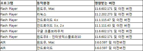 À̹ø¿¡ ¹ßÇ¥ÇÑ º¸¾È ¾÷µ¥ÀÌÆ®¿¡ ´ëÇÑ Adobe Flash PlayerÀÇ 4°³ Ãë¾àÁ¡Àº ´ÙÀ½°ú °°´Ù.