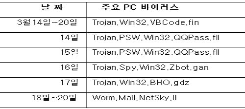 ¡ã 3¿ù 14ÀÏ~20ÀÏ Áß±¹³» ÁÖ¿ä PC ¹ÙÀÌ·¯½º(Ãâó:Áß±¹ ·çÀ̽ÌÁ¤º¸±â¼ú)