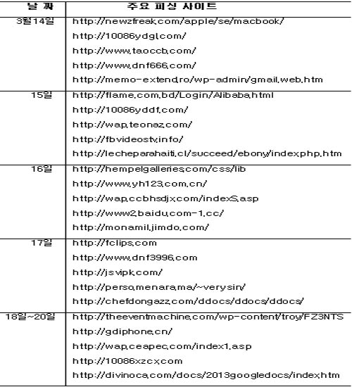 ³¯Â¥ º°·Î Áß±¹¿¡¼­ ´©¸®²Ûµé¿¡°Ô ÇÇÇØ¸¦ ³¢Ä£ ÇÇ½Ì »çÀÌÆ® ¡®Åé5¡¯¸¦ º¸¸é, 3¿ù 14ÀÏ¿¡´Â ¡âÆäÀ̽ººÏ(Facebook) ÀüÀÚ¿ìÆíÀ» °¡ÀåÇÑ http://newzfreak.com/apple/se/macbook/ (»ç¿ëÀÚ¸¦ ¼ÓÀ̰í ÀüÀÚ¿ìÆí °èÁ¤°ú ºñ¹Ð¹øÈ£ ÈÉħ) ¡âÁß±¹À̵¿Åë½Å(China Mobile)À¸·Î À§ÀåÇÑ http://10086ydgl.com/ (Àû¸³ Æ÷ÀÎÆ®ÀÇ Çö±Ý ±³È¯ Á¤º¸·Î »ç¿ëÀÚÀÇ Ä«µå ¹øÈ£¿Í ºñ¹Ð¹øÈ£ »©³¿) ¡âÁß±¹°Ç¼³ÀºÇàÀ» »çĪÇÑ http://www.taoccb.com/ (Ä«µå ¹øÈ£¿Í ºñ¹Ð¹øÈ£ ÈÉħ) ¡âÅÖ½®(Tencent)ÀÇ ¿Â¶óÀÎ °ÔÀÓÀ¸·Î À§ÀåÇÑ http://www.dnf666.com/ (ÇãÀ§ S/W Á¤º¸·Î »ç¿ëÀÚÀÇ °èÁ¤°ú ºñ¹Ð¹øÈ£ ÆíÃë) ¡âÁö¸ÞÀÏ(Gmail) ÀüÀÚ¿ìÆíÀ¸·Î ¼ÓÀÎ http://memo-extend.ro/wp-admin/gmail.web.htm (ÀüÀÚ¿ìÆí °èÁ¤°ú ºñ¹Ð¹øÈ£ ÈÉħ) ¼øÀ¸·Î ²ÅÇû´Ù.