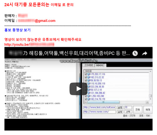 ÇØ´ç ºí·Î±×¿¡ µû¸£¸é ÇØÅ· ÀÇ·Ú´Â 1°Ç ´ç 65¸¸¿ø, À¥ DRDoS´Â 95¸¸¿ø, ÇØÅ·ÅøÀº 6¸¸¿ø¿¡ ÆÇ¸ÅÇϰí ÀÖ´Ù. Á»ºñPCµµ ±¹³»ÀÇ °æ¿ì 1¸¶¸®´ç 300¿øÀ» ¹Þ°í ÀÖ°í ¹Ì±¹À̳ª À¯·´ÂÊ Á»ºñPC¸¦ ¸¸µå´Â µ¥¿¡´Â Á» ´õ ³ôÀº ºñ¿ëÀ» ¿ä±¸ÇÑ´Ù. °³ÀÎ PC¸¦ °ø°ÝÇÏ´Â µ¥¿¡´Â 10ºÐ¿¡ ´Üµ· 3¸¸¿øÀÌ¸é µÈ´Ù. °ÔÀÓ¼¹ö´Â 10ºÐ¿¡ 5¸¸¿ø, À¥»çÀÌÆ® °ø°ÝÀº 10ºÐ¿¡ 10¸¸¿øÀÌ´Ù. ÈÞ´ëÀüÈ À§Ä¡ÃßÀûÀº ¾Èµå·ÎÀÌµå ½º¸¶Æ®ÆùÀº 50¸¸¿ø, ¾ÆÀÌÆùÀº 70¸¸¿ø¾¿ÀÌ´Ù.