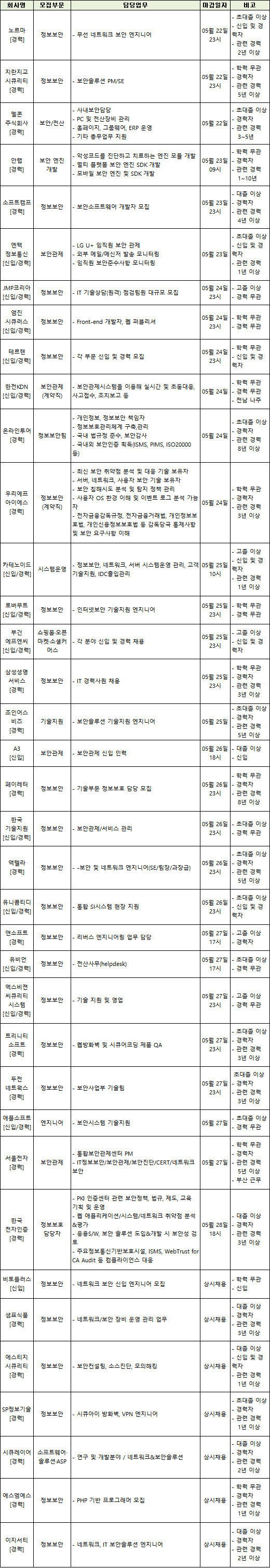 [º¸¾È´º½º ¹Î¼¼¾Æ] 5¿ù ³Ý° ÁÖ¿¡´Â 37°³»ç°¡ º¸¾ÈÀη ä¿ëÀ» ÁøÇà ÁßÀÌ´Ù. ÀÌ Áß °æ·ÂÁ÷ ä¿ëÀº 22°³»ç, ½ÅÀÔ ¹× °æ·ÂÁ÷À» ÇÔ²² ä¿ëÇϰųª °æ·Â¿¡ °ü°è ¾øÀÌ Ã¤¿ëÇÏ´Â °÷Àº 13°³»ç, ½ÅÀÔ Ã¤¿ëÀº 2°³»ç´Ù.