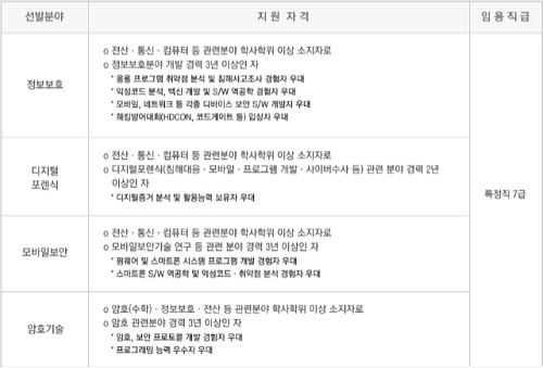[º¸¾È´º½º ¹Î¼¼¾Æ] ±¹°¡Á¤º¸¿ø¿¡¼ Á¤º¸º¸È£ µî ITºÐ¾ß °æ·ÂÁ÷À» ä¿ëÇÑ´Ù.