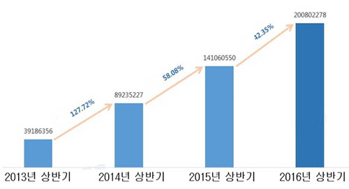 ¡ã 2014³â~2016³â »ó¹Ý±â Áß±¹ ³» ¾Èµå·ÎÀÌµå ½º¸¶Æ®Æù ¹ÙÀÌ·¯½º Áõ°¡ ¼ö·® ´ëºñ(Ãâó: Áß±¹ ÅÖ½® ¸ð¹ÙÀϺ¸¾È·¦)
