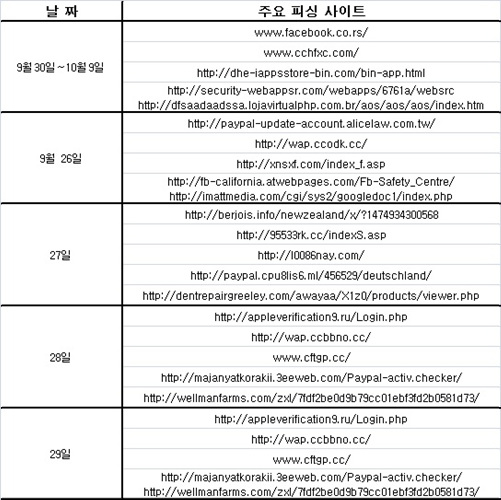 Áß±¹¿¡¼ Ȱ°³¸¦ Ä¡¸ç ´©¸®²ÛÀ» °ø°ÝÇÑ ÇÇ½Ì »çÀÌÆ® ¡®Åé5¡¯¸¦ º¸¸é, Áö³ 9¿ù 30ÀÏ~10¿ù 9ÀÏ ¿Èê µ¿¾È¿¡´Â ¡âÆäÀ̽ººÏ(Facebook)ÀÎ °Íó·³ ¼ÓÀÎ ¡®www.facebook.co.rs/(°èÁ¤°ú ºñ¹Ð¹øÈ£ ÈÉħ)¡¯, ¡âÁß±¹°Ç¼³ÀºÇàÀ» »çĪÇÑ ¡®www.cchfxc.com/(Ä«µå ¹øÈ£¿Í ºñ¹Ð¹øÈ£ ÀýÃë)¡¯, ¡â°¡Â¥ ¾ÖÇÃ(Apple) ID·ù ¡®http://dhe-iappsstore-bin.com/bin-app.html(Ä«µå ¹øÈ£¿Í ºñ¹Ð¹øÈ£ »©³¿)¡¯, ¡â¿Â¶óÀÎ ±ÝÀ¶°áÁ¦ »çÀÌÆ® ÆäÀÌÆÈ(Paypal) ÀüÀÚ¿ìÆíÀ» °¡ÀåÇÑ ¡®http://security-webappsr.com/webapps/6761a/websrc(°èÁ¤°ú ºñ¹Ð¹øÈ£ ÈÉħ)¡¯, ¡â°¡Â¥ Áö¸ÞÀÏ(Gmail)·ù ¡®http://dfsaadaadssa.lojavirtualphp.com.br/aos/aos/aos/index.htm(°èÁ¤°ú ºñ¹Ð¹øÈ£ »©³¿)¡¯ ¼øÀ¸·Î ²ÅÇû´Ù.