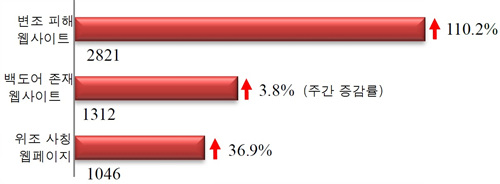 ñé 10¿ù µÑ° ÁÖ º¯Á¶ ÇÇÇØ À¥»çÀÌÆ® 2,821°³..110% ´Ã¾î