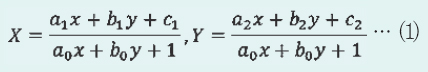 ÀÇ ½Ä(2)¿¡ ÀÇÇØ ÇàÇØÁø´Ù. ´Ü, °è¼ö(a_0, b_0, a_1, b_1, c_1, a_2, b_2, c_2)´Â 4°³ÀÇ ±âÁØÁ¡¿¡¼ ¾òÀ» ¼ö ÀÖ´Ù.