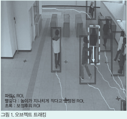 ±×¸² 1Àº ½Ã°ø°£ MRF¸ðµ¨°ú ¿ÀºêÁ§Æ®ÀÇ ³ôÀÌ º¸Á¤ ¾Ë°í¸®ÁòÀ» Á¶ÇÕ½ÃÄ×À» °æ¿ìÀÇ Æ®·¡Å· °á°úÀÇ ¿¹¸¦ Á¦½ÃÇϰí ÀÖ´Ù. ÇÇ(ù¬) ¿ÀŬ·çÁ¯ Àι°ÀÇ ³ôÀ̰¡ Á¤È®ÇÏ°Ô º¸Á¤µÅ ÀÖ´Â °ÍÀ» ¾Ë ¼ö ÀÖ´Ù. ¿ÀºêÁ§Æ®ÀÇ ÁÂÇ¥Á¤º¸(x,y)¿Í »çÀÌÁî Á¤º¸(h,w)´Â ROIÀÇ Á¤º¸¿¡¼ ½Ã°è¿ÀûÀ¸·Î »ý¼ºµÈ´Ù. ¿©±â¿¡¼ ¿ÀºêÁ§Æ®ÀÇ À§Ä¡´Â ROIÀÇ ÇÏ´Ü Áß½ÉÀÌ µÈ´Ù. ±×¸²1ÀÇ Èò ¼±Àº ¿ÀºêÁ§Æ®ÀÇ À§Ä¡±ËÀûÀ» ³ªÅ¸³»°í ÀÖ´Ù.