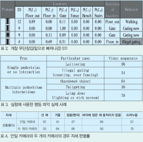 À̹ÌÁö ¼¾¼¿¡ ÀÇÇÑ °¨½Ã ½Ã½ºÅÛÀº ¼ö»óÇÑ Àι°À» °ËÃâÇϱâ À§ÇÑ Àι°Çൿ ÆÄ¾Ç±â¼úÀÌ ÇÊ¿äÇÏ´Ù. Àι°ÇൿÀº ¿òÁ÷ÀÓ ÆÐÅÏÀ̳ª ÀÚ¼¼Á¤º¸ µîÀ» ºÐ¼®ÇÏ´Â °ÍÀ¸·Î ÆÄ¾ÇÇÒ ¼ö ÀÖ´Ù. ¿ø·¡, ¿©·¯ °¡Áö Àι°Çൿ ÆÄ¾Ç ¹æ¹ýÀÌ ¿¬±¸¡¤°³¹ßµÇ°í ÀÖÁö¸¸, Àι°ÀÇ ÀÚ¼¼Á¤º¸³ª Àι°ÀÇ À̵¿ ±ËÀûÁ¤º¸³ª ÀǹÌÀûÀÎ À§Ä¡Á¤º¸¸¦ ³ªÅ¸³»´Â °ÍÀ» ±Ù°Å·Î Çϰí ÀÖ´Ù6).