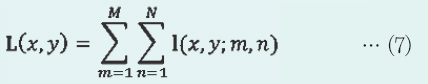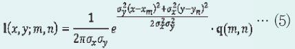 ÇÑÆí, ¥òx, ¥òyÀº °¢°¢ x¹æÇâ, y¹æÇâÀÇ Ç¥ÁØÆíÂ÷À̸ç, °æÇèÀûÀ¸·Î ±¸ÇØÁø´Ù. ÀÌ ¶§ °¢ ºí·Ï (x, y)ÀÇ À§Ä¡ »óÅÂÈ®·ü I(x, y)´Â ½Ä (7)°ú °°ÀÌ À̹ÌÁö»óÀÇ ¸ðµç ºí·ÏÀÇ À§Ä¡ º¤ÅÍÀÇ ÃÑÇÕÀ» Á¤±ÔÈÇÑ °ÍÀ¸·Î Ç¥ÇöµÈ´Ù.
