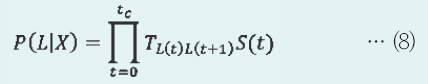 Àι°ÀÌ À§Ä¡ÇÏ´Â À§Ä¡ÀÇ °ËÃâÀº Æ®·¼¸®½º(trellis) ºÎÈ£·Î ÇàÇØÁø´Ù. ¿ÀºêÁ§Æ® À§Ä¡ÀÇ °æ·Î´Â °ú°Å¿¡ ±× ¿ÀºêÁ§Æ®°¡ Åë°úÇÑ °æ·Î»óÀÇ À§Ä¡ »óÅÂÈ®·ü L(x, y)°ú °¢ À§Ä¡°£ÀÇ »óź¯ÀÌ È®·üT·ÎºÎÅÍ ±¸ÇØÁø´Ù. ¿¹¸¦ µé¸é ¿ÀºêÁ§Æ® °æ·Î°¡ xÀÎ È®·üp(L|X)Àº ½Ã°¢ t(0¡Ât¡Ât0)ÀÇ À§Ä¡¸¦ L(t), »óÅÂÈ®·üÀ» S(t), À§Ä¡L(t)¿¡¼ L(t+1)·Î Àüȯ È®·üÀ» TL(t)L(t+1)·Î Çϸé
