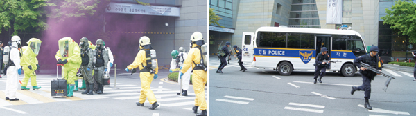 ±¤Áø±¸ °Ç´ëÀÔ±¸¿ª ±ÙóÀÇ ÇÑ ´ëÇü ÁÖ»óº¹ÇÕ °Ç¹°¿¡¼ °³ÃÖµÈ À̹ø ÈÆ·ÃÀº ºÏÇÑÀÇ Æ¯¼ö°øÀÛ¿øµéÀÌ °Ç¹°¿¡ ħÅõÇØ µ¶°¡½º¿Í ÆøÅºÀ¸·Î ½Ã¹Î°ú °Ç¹°À» °ø°ÝÇÏÀÚ ±º°ú °æÂûÀÇ Æ¯¼öºÎ´ë°¡ ħÅõÇØ À̸¦ ¸·°í °¢Á¾ Æø¹ß°ú µ¶°¡½º·Î ºÎÅÍ ½Ã¹ÎÀÇ ¾ÈÀüÀ» ÁöŲ´Ù´Â ½Ã³ª¸®¿À·Î ÁøÇàµÇ¾ú´Ù.