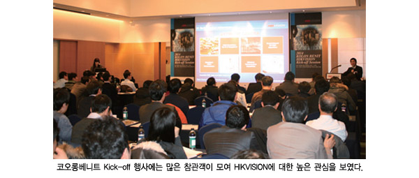 ÄÚ¿À·Õº£´ÏÆ®ÀÇ Kick-off SessionÀº ÃÖ±Ù CCTV »ê¾÷ÇöȲ°ú ÄÚ¿À·Õº£´ÏÆ®ÀÇ ÆÄÆ®³Ê Á¤Ã¥À» ¼Ò°³ÇÏ´Â ÇÑÆí, HIKVISION ½º¸¶Æ® Á¦Ç°±ºÀÇ ±â´ÉÀ» ¼Ò°³ÇÏ´Â ÀÚ¸®¿´´Ù. ÄÚ¿À·Õº£´ÏÆ®ÀÇ ±èÀ¯½Å ÆÀÀåÀº HIKVISIONÀÌ ÇÏ·ç¿¡ Á¦Á¶ÇÒ ¼ö ÀÖ´Â IP Ä«¸Þ¶ó°¡ 2¸¸´ëÀ̸ç, ¾Æ³¯·Î±× Ä«¸Þ¶ó´Â 3¸¸´ë¸¦ µ¿½Ã¿¡ Á¦Á¶ÇÒ ¼ö ÀÖ´Â ±Ô¸ð¶ó°í ¼³¸íÇß´Ù. ƯÈ÷, Á¦Ç° Á¶¸³°ú QC¿¡ ¸¹Àº ÅõÀÚ¸¦ ¾Æ³¢Áö ¾Ê°í ÀÖÀ¸¸ç, º»»ç¿¡ ATM, ½´ÆÛ¸¶ÄÏ, ÃâÀÔÅëÁ¦ µî °¢ ºÐ¾ßº° ÆÐŰÁö¸¦ Àü½ÃÇÏ°í ´Ü¼øÈ÷ CCTV Á¦Á¶»ç°¡ ¾Æ´Ñ ¼Ö·ç¼Ç º£À̽ºÀÇ È¸»ç¶ó°í °Á¶Çß´Ù.