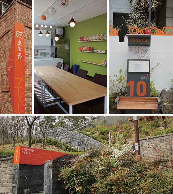¼Ò±Ý±æÀÌ ³ë¶õ»öÀ̶ó¸é È£¹Ú°ñÀº È£¹Ú»ö(ÁÖȲ»ö)À¸·Î ±¸ÃàµÇ¾îÀÖ´Ù. ¶ÇÇÑ, ¹Ù´Ú¿¡ ³ë¶õ»ö Á¡¼±À¸·Î ±æÀ» ¾Ë·ÁÁÖ´ø ¼Ò±Ý±æ°ú ´Þ¸® È£¹Ú°ñÀº Àü½ÅÁÖ¸¦ È£¹Ú»öÀ¸·Î Ä¥ÇØ ±æÀ» ¾Ë·ÁÁØ´Ù. ¼´ë¹®±¸ È«Àºµ¿¿¡ Á¶¼ºµÈ È£¹Ú°ñÀº ÁֹεéÀÇ °øµ¿Ã¼ Ȱµ¿ÀÌ ÀÚ¿¬ÀûÀÎ °¨½Ã·Î À̾îÁ® ¹üÁ˸¦ ¿¹¹æÇÒ ¼ö ÀÖµµ·Ï ÃßÁøµÇ´Â ¼¿ïÇü ¾ÈÀü¸¶À» ÇÁ·Î±×·¥ÀÇ ÀÏȯÀ¸·Î ±¸ÃàµÆ´Ù. ƯÈ÷, ÁֹεéÀÇ °øµ¿Ã¼ Ȱµ¿À» À§ÇÑ »ç¶û¹æÀ» Áß½ÉÀ¸·Î ¾ÈÀü Á¤·ùÀåÀÌ °÷°÷¿¡ ¸¶·ÃµÇ¾î ÀÖ¾î ºñ»ó½Ã ÁֹεéÀÇ ¾ÈÀüÀ» Áöų ¼ö ÀÖ´Â °ÍÀº ¹°·Ð, ³ôÀº °æ»ç¿¡ °É¾î ´Ù´Ï±â Èûµç ÁֹεéÀÌ ½¬¾î°¥ ¼ö ÀÖ´Â °÷ÀÌ´Ù.