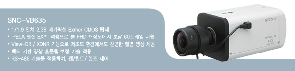 ¼Ò´ÏÄÚ¸®¾Æ PS»ç¾÷ºÎ(bp.sony.co.kr)¿¡¼´Â ¼Ò´Ï ½ÃÅ¥¸®Æ¼ Ä«¸Þ¶óÀÇ ÇÏÀÌ¿£µå ±â¼úÀÎ »õ·Î¿î IPELA ¿£ÁøÀÌ Àû¿ëµÈ 6¼¼´ë 1080/60p, 1/2ÀÎÄ¡ ³×Æ®¿öÅ© Ä«¸Þ¶ó ¡®VB635¡¯¸¦ Ãâ½ÃÇß´Ù.