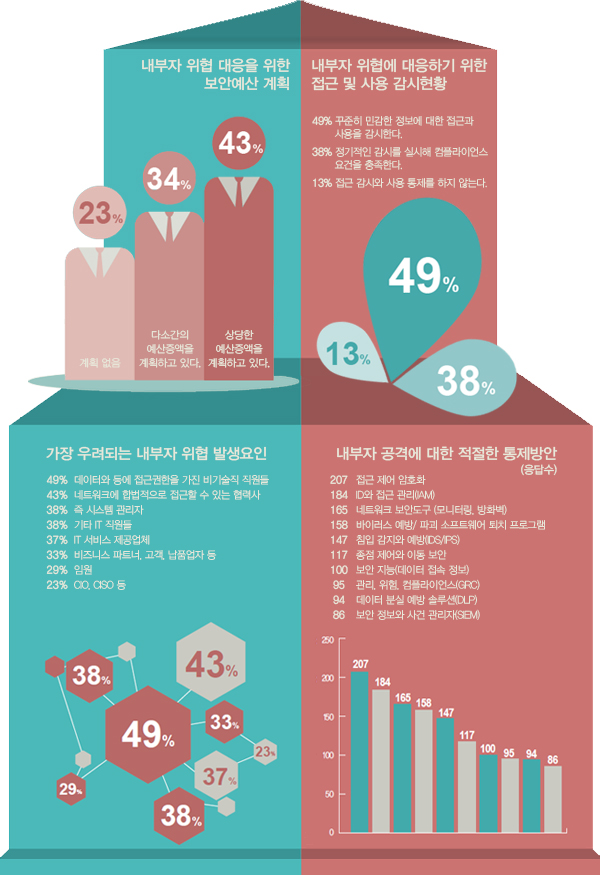 ±¹³»´Â ¹°·Ð, ÇØ¿Ü¿¡¼µµ Á¤º¸À¯Ãâ»ç°í¿¡ ´ëÇÑ °ü½ÉÀÌ ³ô¾ÆÁö°í ÀÖ´Â °¡¿îµ¥ ³»ºÎÀÚ À§ÇùÀº ±â¾÷ÀÌ Á÷¸éÇÑ ÃÖ´ëÀÇ IT º¸¾È À̽´·Î ¶°¿À¸£°í ÀÖ´Ù. ƯÈ÷ ¹Î°¨ÇÑ Á¤º¸ÀÇ ¾çÀÌ ¸¹¾ÆÁö´Â °¡¿îµ¥ Ŭ¶ó¿ìµå, ¸ð¹ÙÀÏ, ºòµ¥ÀÌÅÍ µîÀÇ »õ·Î¿î À̽´ÀÇ µîÀåÀº ³»ºÎÀÚ À§ÇùÀ» ´õ¿í °¡Áß½Ã۰í ÀÖÀ¸¸ç ³»ºÎÀÚ À§Çù¿¡ ´ëÀÀÇϱâ À§ÇÑ ¾ÏÈ£È, Á¢±ÙÁ¦¾î, µ¥ÀÌÅÍ Á¢±Ù ¸ð´ÏÅ͸µ µîÀÇ º¸¾ÈÀü·« È®º¸ÀÇ Çʿ伺ÀÌ Á¦±âµÇ°í ÀÖ´Ù.