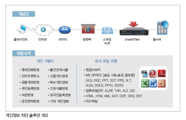 Ãʱ⿡´Â ¼ÒÇÁÆ®¿þ¾îÇüÀÇ Á¦Ç°À¸·Î °³ÀÎÁ¤º¸¸¦ ÀÔ·ÂÇÒ ¶§¸¸ Â÷´ÜÇÏ´Â ¹æ¹ýÀ» ÁÖ·Î »ç¿ëÇßÁö¸¸ °³ÀÎÁ¤º¸ÀÇ À¯Ãâ »ç·Ê°¡ ºó¹øÈ÷ ¹ß»ýÇÏ¸é¼ ÀÌÁ¦´Â Çϵå¿þ¾î ÀÏüÇü Á¦Ç°À¸·Î ÀԷ°ú Ãâ·ÂÀ» µ¿½Ã¿¡ Â÷´Ü ÇÒ ¼ö ÀÖ´Â ¼Ö·ç¼ÇÀ» ÁÖ·Î µµÀÔÇϰí ÀÖ´Â Ãß¼¼´Ù.