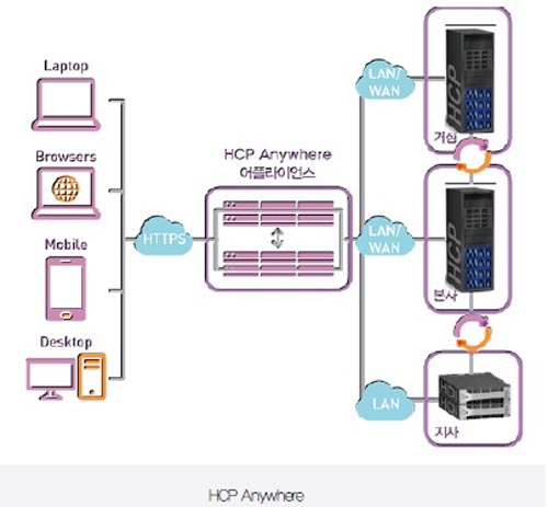 µÑ°, HCP ¾Ö´Ï¿þ¾î´Â HDI(Hitachi Data Ingestor) ¿ø°Ý ¼­¹ö¸¦ ÅëÇØ µ¥ÀÌÅͼ¾ÅÍ ¿ÜºÎ¿¡ ÆÄÀÏ ¼­ºñ½º¸¦ ±¸ÃàÇÒ ¼ö ÀÖÀ¸¸ç, ¿ø°ÝÁö¿¡¼­ °£ÆíÇÏ°Ô ÆÄÀÏ ¼­ºñ½º¸¦ »ç¿ëÇÒ ¼ö ÀÖµµ·Ï Áö¿øÇÑ´Ù. ¼Â°, ¸ð¹ÙÀÏ ±â±â¿¡ ´ëÇÑ Áö¿øÀÌ °­È­µÈ HCP´Â ¸ð¹ÙÀÏ ±â±â °ü¸® (MDM) ¼Ö·ç¼Ç°ú ȣȯµÇ¹Ç·Î HCP Anywhere¿Í ±âÁ¸ÀÇ MDM ¼Ö·ç¼Ç °£ Ãæµ¹ ¾øÀÌ µ¿½Ã¿¡ ¿î¿µÇÒ ¼ö ÀÖ´Ù. iOS¿Í ¾Èµå·ÎÀÌµå ±â¹ÝÀÇ ½º¸¶Æ® ±â±â¸¦ Áö¿øÇÑ´Ù. ¸¶Áö¸·À¸·Î HCP ¾Ö´Ï¿þ¾î¿Í HDI°¡ ±ä¹ÐÇÏ°Ô ÅëÇÕµÈ HCP´Â IT ºÎ¼­¿¡¼­ ¾ðÁ¦ ¾îµð¿¡¼­ ¾î¶°ÇÑ ±â±â¸¦ »ç¿ëÇÏµç ¸ðµç Ŭ¶ó¿ìµåÀÇ ÄÜÅÙÆ® ¸ðºô¸®Æ¼¸¦ º¸ÀåÇÔÀ¸·Î½á µ¥ÀÌÅͼ¾ÅÍ º¸È£, °Å¹ö³Í½º, È¿À²¼º¿¡ ´ëÇÑ ¿ä±¸¸¦ ¿Ïº®È÷ Áö¿øÇÑ´Ù.