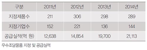 Âü°í·Î ¿ì¼öÁ¶´Þ¹°Ç° ½ÅûÀÚ°ÝÀº ±â¼úÀÎÁõ°ú ǰÁúÀÎÁõ, º¸°ÇÁ¦Ç° ǰÁúÀÎÁõÀ» °¢°¢ 1°³ ÀÌ»ó ȹµæÇÑ Áß¼Ò¡¤º¥Ã³±â¾÷ Á¦Ç°À̾î¾ß ÇÑ´Ù. µû¶ó¼ ¿ì¼öÁ¶´Þ¹°Ç°À» ÁöÁ¤¹Þ°íÀÚ ÇÏ´Â ±â¾÷Àº ¸ÕÀú Á¦Ç°ÀÇ ±â¼ú¡¤Ç°Áú ¼öÁØÀ» Áõ¸íÇÒ ¼ö ÀÖ´Â ÀÎÁõÀ» ÃëµæÇÑ ÈÄ ÁöÁ¤½Åû¼¸¦ ÀÛ¼ºÇÏ¿© Á¶´Þû(¶Ç´Â Á¤ºÎÁ¶´Þ¿ì¼öÁ¦Ç°Çùȸ)À¸·Î Á¦ÃâÇÏ¸é ¿ì¼öÁ¶´Þ¹°Ç° ÁöÁ¤Á¦µµ¸¦ ÀÌ¿ëÇÒ ¼ö ÀÖ´Ù´Â °ÍÀÌ´Ù.