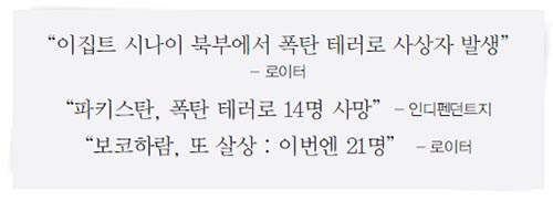 °ø°³ óÇü¿¡ ÆøÅº Å×·¯, °¢Á¾ ³³Ä¡¿¡ ÀüÅõ, ½ÉÁö¾î »ýÈÇÐ ¹«±â±îÁö, ¹Ì±¹ ÇÑ Á¤ºÎ±â°ü ÀÇ¿øÀÌ ¹¦»çÇÑ °Íó·³ Áö±Ý ¿ì¸®´Â ¿ª»ç»ó ÃÖ¾ÇÀÇ Å×·¯ ½Ã´ë¸¦ Áö³ª°í ÀÖ´Ù. ¾îÁö°£ÇÑ º¸¾ÈÀåÄ¡·Î´Â ¸¶À½¸Ô°í ´Þ·Áµå´Â ÀÚ»ì ÆøÅº Å×·¯¹üÀ» ¸·À» ¼ö ¾ø°í, Á¤±Ô±ºÁ¶Â÷µµ Å×·¯¿ÍÀÇ ÀüÀïÀ» Àå±âÀüÀ¸·Î ²ø°í °¡±â°¡ ºÎ´ã½º·¯¿î »óÅ´Ù. ±Þ±â¾ß ÇöÀç ¹Ì±¹Àº ¿ì¿ï°ú ȸÀÇÀÇ °¨Á¤¿¡ È۽ο©ÀÖ´Ù´Â ³íÆòµµ ÀÖ¾ú´Ù.
