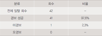 ÀÌ °á°ú·ÎºÎÅÍ °³¹ß¹æ½ÄÀº 97% ÀÌ»óÀÇ °æº¸ ¼º°ø·üÀ» ³ªÅ¸³Â±â ¶§¹®¿¡ ±¤°¢ Ä«¸Þ¶ó·Îµµ ¾ÈÁ¤µÈ Â÷¼± ÀÏÅ» °æº¸¸¦ ½ÇÇöÇÒ ¼ö ÀÖ´Ù´Â °ÍÀ» ¾Ë¾Ò´Ù.