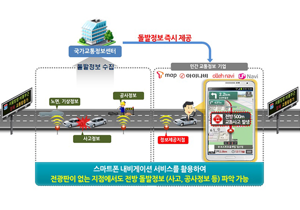 ±¹Åä±³ÅëºÎ°¡ ±¹°¡±³ÅëÁ¤º¸¼¾Å͸¦ ÅëÇØ ¹Î°£±â¾÷¿¡¼ °í¼Óµµ·Î µ¹¹ß »óȲ Á¤º¸¸¦ Á¦°øÇÔÀ¸·Î½á µµ·Î Àü±¤ÆÇ À§Ä¡¿Í »ó°ü¾øÀÌ ¿îÀüÀÚµéÀÌ ½º¸¶Æ®Æù ¾ÛÀ¸·Î Àü¹æÀÇ µµ·Î»óȲÀ» ÀÎÁöÇÒ ¼ö ÀÖ°Ô µÈ´Ù. ¶Ç ¼ºñ½º°¡ ½ÃÇàµÊ¿¡ µû¶ó, µµ·ÎÀü±¤ÆÇ ¼³Ä¡ºñ¿ëÀÌ Àý°¨µÈ´Ù. ÀÌ »Ó¸¸ ¾Æ´Ï¶ó, Àü¹æÀÇ µµ·Î »óȲÀ» ¹Ì¸® ÀÎÁöÇÔÀ¸·Î½á 2Â÷»ç°í ¿¹¹æ¿¡µµ Å« È¿°ú¸¦ °ÅµÑ °ÍÀ¸·Î ±â´ëµÈ´Ù.
