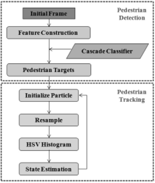 À̹ø ±â»ç¿¡¼´Â ¾ß°£ ¿µ»ó¿¡¼ º¸ÇàÀÚ¸¦ °ËÃâÇϰí ÃßÀûÇϱâ À§ÇØ Adaboost ¾Ë°í¸®Áò°ú ÆÄƼŬ ÇÊÅ͸¦ ÀÌ¿ëÇÑ´Ù. ±×¸² 2´Â ¾ß°£ ¿µ»ó±â¹Ý¿¡¼ °´Ã¼¸¦ °ËÃ⡤ÃßÀûÇÏ´Â Àüü ¾Ë°í¸®Áò È帧µµ¸¦ ³ªÅ¸³½´Ù.