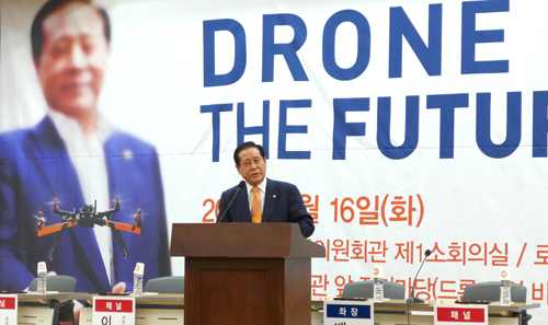 À̳¯ Åä·Ðȸ¿¡´Â ¡®µå·Ð(DRONE)¡¯ÀÇ À§»óÀ» º¸¿©ÁÖµí ±è¹«¼º »õ´©¸®´ç ´ëÇ¥ÃÖ°íÀ§¿øÀ» ºñ·ÔÇØ ¹Ì¹æÀ§ ¼Ò¼Ó ±¹È¸ÀÇ¿øµéÀÌ Âü¼®ÇØ ÃàÇÏÀλç¿Í µå·Ð»ê¾÷ ¹ßÀüÀ» À§ÇØ ±¹È¸°¡ ³ë·ÂÇϰڴٴ ÀÇÁö¸¦ ÇÇ·ÂÇß´Ù.