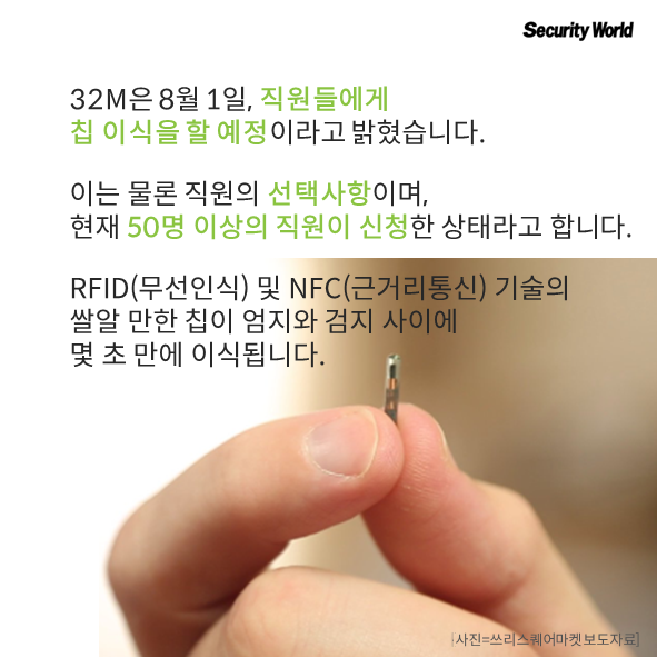 32MÀº 8¿ù 1ÀÏ, Á÷¿øµé¿¡°Ô Ĩ À̽ÄÀ» ÇÒ ¿¹Á¤À̶ó°í ¹àÇû½À´Ï´Ù. ÀÌ´Â ¹°·Ð Á÷¿øÀÇ ¼±ÅûçÇ×À̸ç, 50¸í ÀÌ»óÀÇ Á÷¿øÀÌ ÀÚ¹ßÀûÀ¸·Î ½ÅûÇß´Ù°í ÇÕ´Ï´Ù. RFID(¹«¼±ÀνÄ) ¹× NFC(±Ù°Å¸® Åë½Å) ±â¼úÀÇ ½Ò¾Ë ¸¸ÇÑ Ä¨ÀÌ ¾öÁö¿Í °ËÁö »çÀÌ¿¡ ¸î ÃÊ ¸¸¿¡ À̽ĵ˴ϴÙ.